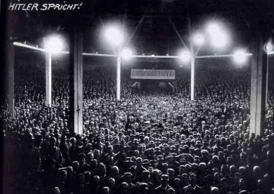 Un comizio del NSDAP in una birreria a Berlino.Nella didascalia, scritta a mano, si legge: "Parla Hitler!".